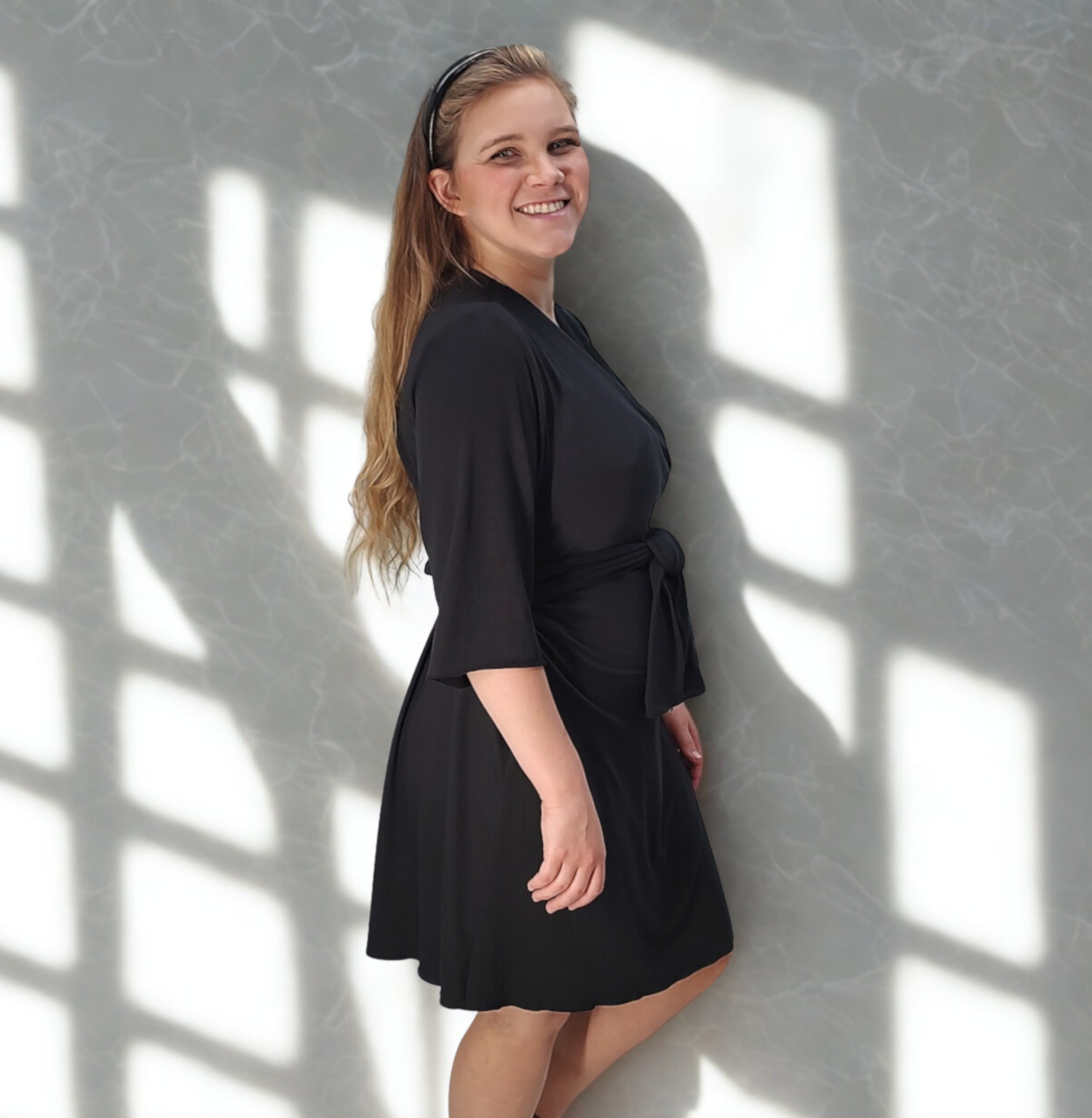The Kango Dress/Robe is a modern evolution of the original Kango Wrap — designed with the same beloved comfort and functionality, now extended into a beautiful, knee-length dress/robe.